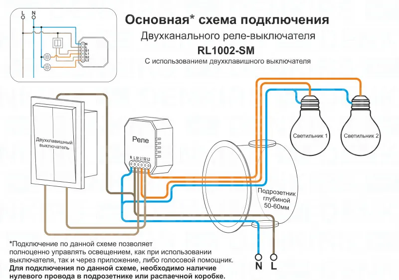 Wi-Fi реле-выключатель двухканальное Denkirs 2x1150Вт/150Вт для LED RL1002-SM купить в Подольске по лучшей цене
