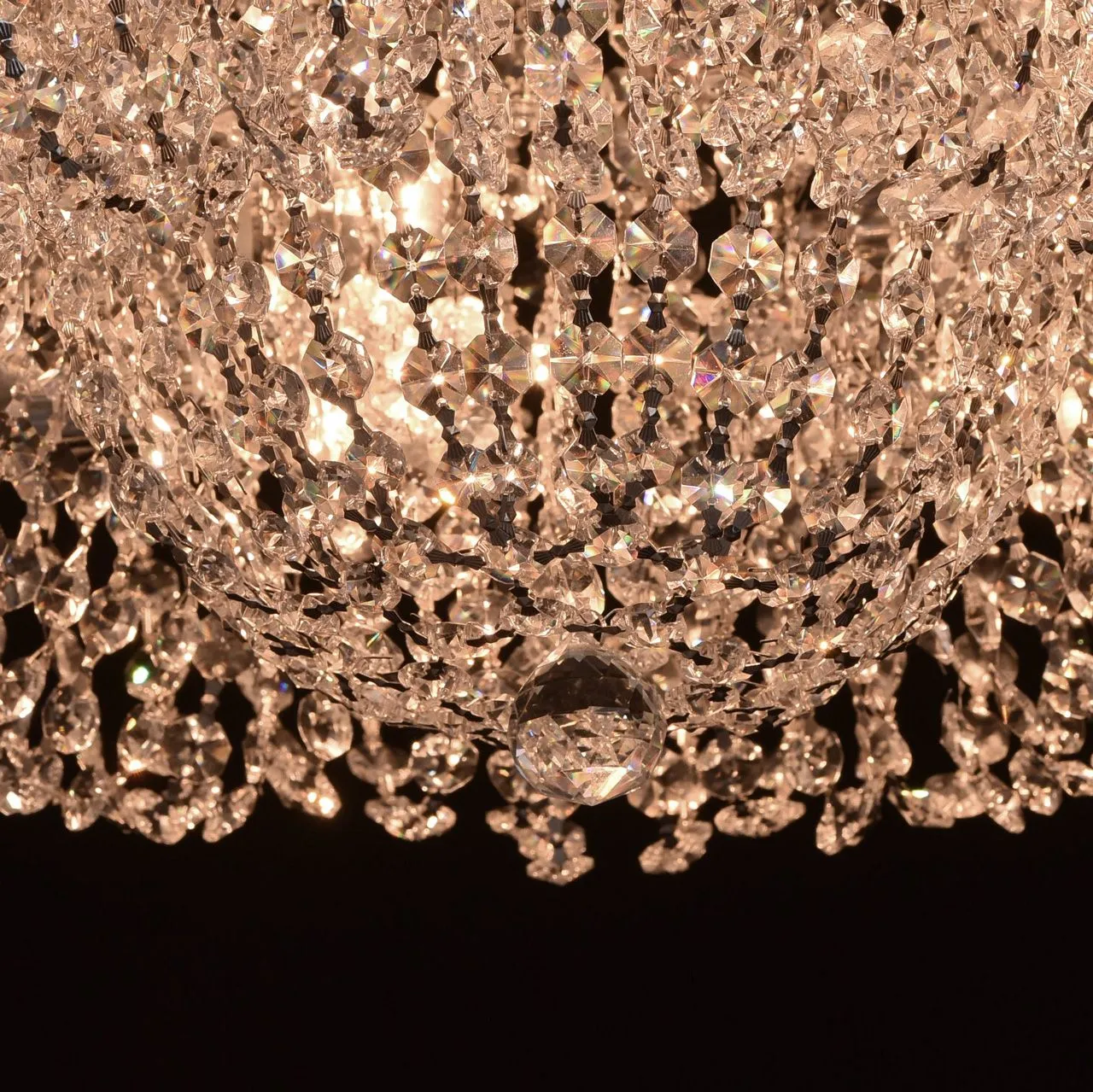 Металлическое основание цвета хрома, декоративные элементы из хрустального стекла.